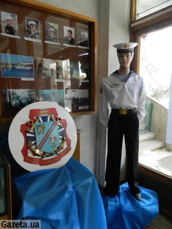 Крім цієї атрибутики, на одному зі стендів є і емблема корвету "Тернопіль".