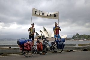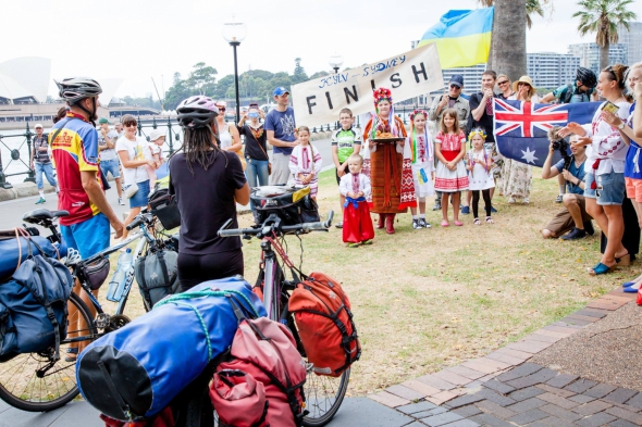 Українські веломандрівники Ярина Квітка та Володимир Муляр, які 16 місяців тому вирушили з Києва в подорож, нарешті досягли свого пункту призначення - австралійського міста Сіднея.