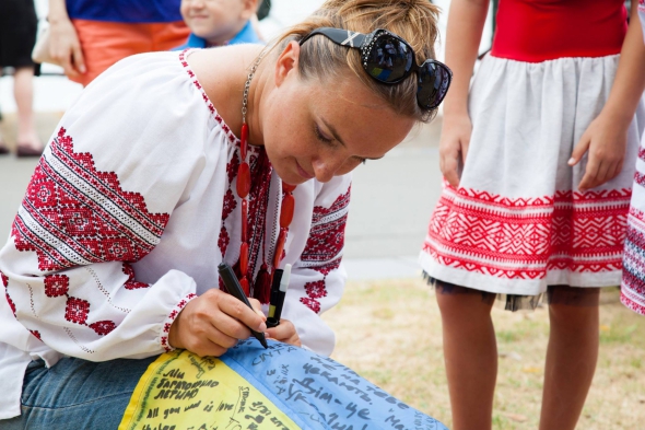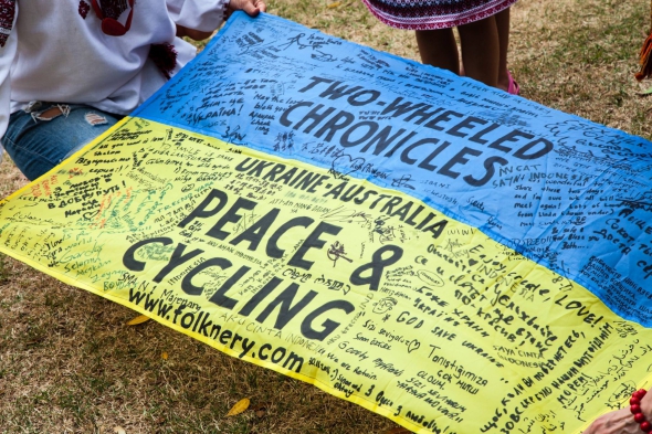 Їх зустріла як рідних чисельна українська громада Австралії. Мандрівники передали їм стяг України.
