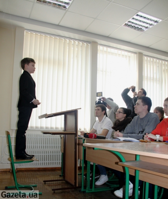9-річний школяр Віталій Нечаєв з міста Звенигородка, що на Черкащині, читає лекції студентам третього курсу.