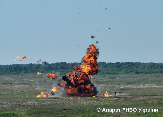 "Розвідувально-ударний комплекс "Сокіл", який ми сьогодні випробували, складається з однієї розвідувальної та трьох ударних бойових машин, тому він може знаходити та точно вражати цілі, використовуючи, залежно від завдань, боєприпаси фугасної, осколково-фугасної та термобаричної дії. Випробування відбувались у надзвичайно складних метеоумовах. Пориви вітру були 14-17 метрів на секунду. Фактично всі поставлені завдання виконані. Цілі - вражені", - каже голова РНБО Олександр Турчинов.