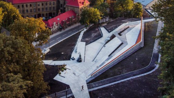 Наразі готова лише верхня тераса. Наступним етапом буде будівництво пішохідного моста, що з'єднає Меморіал зі сквером "На валах".
