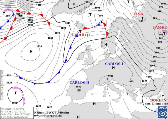 Антициклон Carlos і циклон Famke продовжать формувати погоду 15-16 січня, повідомляє синоптикиня Наталка Діденко у Facebook.