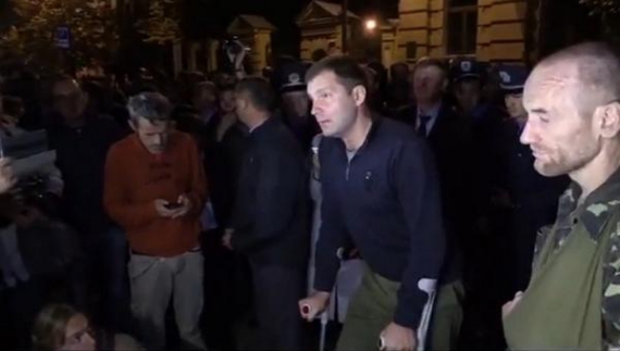 До солдатів, які пікетують Адміністрацію президента прийшли поранені бійці батальйону "Айдар" і намагаються переконати їх припинити акцію.