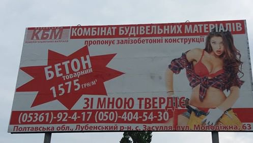 На Полтавщині з'явилася реклама Лубенського будівельного комбінату з напівоголеною дівчиною і надписом "Зі мною твердіє".