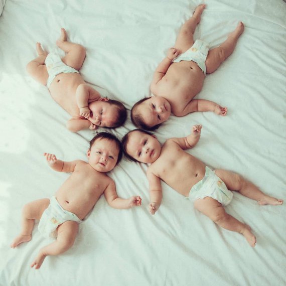 - Дуже страшно було. Я двійні не хотіла, а тут четверня. Чоловік підбадьорював і постійно говорив: "Ми зможемо, витягнемо, прогодуємо, народимо". Усе трималося на його словах. До 25-го тижня вагітності було як завжди. А потім поклали на збереження. 2 місяці до пологів я лежала в лікарні. Уже після 25-го тижня почалися активний ріст живота, набряки. За місяць до пологів у мене був палатний режим. Я не виходила, навіть щоб здати аналізи. Приходили до мене. Живіт ріс не по днях, а по годинах. Мій організм не витримував такого. Не могла стояти, сидіти, їсти. Пологи пройшли нормально. Були готові до гіршого. Але пройшло все добре і швидко: за 2 хвилини дістали всіх чотирьох, - розповідає мама четверні.