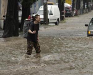 Через забиті стоки вода стрімко піднялася на півметра, це ускладнило рух транспорту, деякі автомобілі затопило.