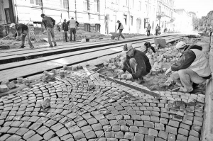 — Скільки нам довелося усього наслухатися від місцевих, — махає рукою 36-річний Олег Береза, директор комунального підприємства "Львівавтодор", у вівторок по обіді. Оглядає на Личаківській роботу працівників турецької фірми "Онур". Вони кладуть бруківку, на вулиці іде луна від молотків. — Усе літо мешканці мали незручності. Все було розкопане — і дорога, і тротуари. Не було як автомобілем до хати під'їхати. Дівчата на каблучках стрягли у піску. Ми пояснювали людям, що треба потерпіти. Адже для них буде приємний результат. Трамвайна колія вулиці Личаківської від площі Митної до вулиці Заньковецької буде безшумною.