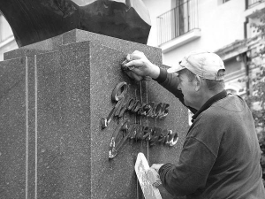 У жовтні 2009-го з Меморіалу слави на Дубенському цвинтарі у Рівному троє безробітних поцупили 10 букв з латуні. Хотіли здати на брухт і купити спиртне. Вандалів засудили до п"яти років ув"язнення.