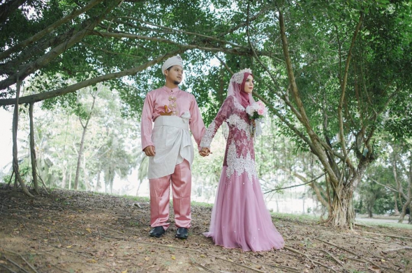 Навіть на весіллі більшість малазійок не знімають хіджабу. Мусульманські традиції також диктують кольори весільної сукні – від кремового до лавандового. Традиційно наречена прикрашає ступні і руки тимчасовими татуювання із хни.