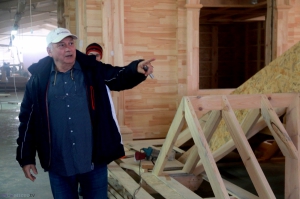 "Отже тут дерево, потім простір, потім дерево з ізоляцією, знову простір, знову дерево і нарешті – кімната. Ми всередині робимо ізоляцію, інтернет, електрику – все! Якщо ви придивитесь, у Карпатах всі будинки дерев'яні, найстаріші будинки в світі – дерев'яні. Такі будинки будували у Франції ХVIII ст і я взяв їх за основу, правда оригінальні будинки трошки менші", – розповідає підприємець.