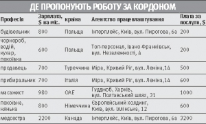 — У Канаді за годину догляду за лежачим хворим платять 50 канадських доларів (419 грн за курсом Національного банку. — "ГПУ"), медсестрам — до 70, це 587 гривень на наші гроші. — каже 29-річний Сергій Поліщук, менеджер "Інтерплейсу". — Пропонуємо також роботу в Кувейті. Там потрібні фітнес-тренери зі знанням англійської. За годину в Кувейті платять 20 американських доларів, за місяць можна заробити 800. Попит на робочу силу з України є. У Німеччині, Італії, Франції місцеві розлінилися. Працюють по пару годин до обіду та скільки ж у другій половині дня. Прибиральниками, няньками, чорноробами, офіціантами працювати не хочуть.