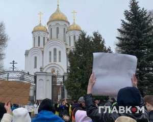 Наразі біля церкви зібралися учасники протесту, а також правоохоронці та поліція "Діалогу". Присутні вигукують: "Геть московського попа".