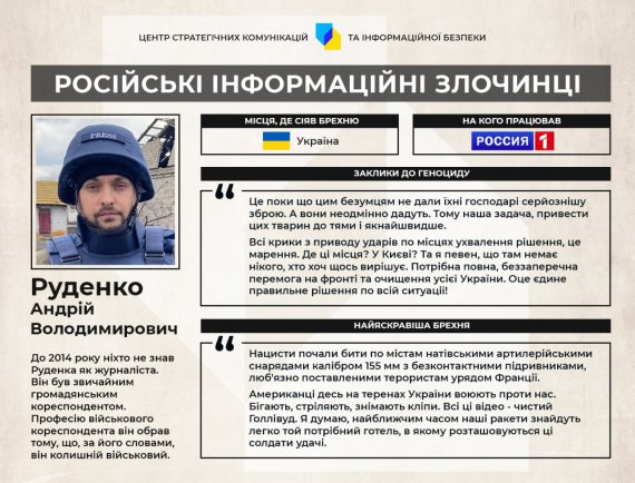 Андрій Руденко – російський журналіст. До 2014 року працював звичайним кореспондентом, пише відомство в Telegram.