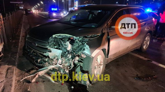 У ДТП потрапив автомобіль Ford Edge, який рухався в лівому ряду у бік Дарницької площі.