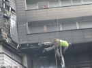 Жінка також розповіла, що це лише термінові роботи, аби ліквідувати небезпеку. А для повної ліквідації наслідків пожежі, за її словами, потрібно щонайменше 4 людини на висоті, і десь 2-3 осіб, які зніматимуть уламки фасаду.