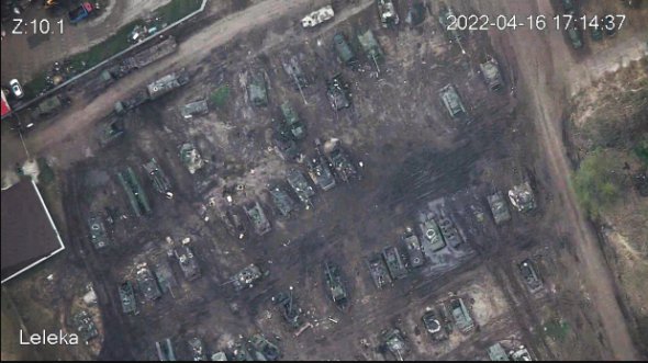 За допомогою українського дрона сфотографували звалище підбитих танків на території Росії.
