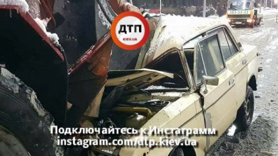 У Києві на Повітрофлотському проспекті автомобіль ВАЗ врізався у трактор. Аварія сталась 11 грудня ввечері.