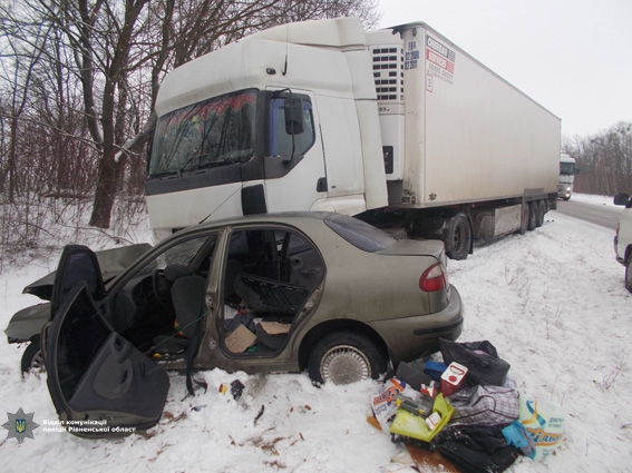 На Рівненщині легковик потрапив під колеса вантажівки. Жінка та двоє маленьких дітей у лікарні.