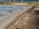 Однак масляна пляма вже дійшла до пляжу "Стрілка". Там можна побачити потемнілий від нафтопродуктів пісок, у воді чітко видно залишки мазуту.