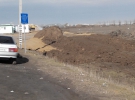 "Тут величезне поле, десятки гектарів, половина його вже засипана землею. Працюють виброкатки. На дні рову їх не видно, але земля під ногами відчутно вібрує. Поки стояли в черзі на контролі, підійшли до краю рову - там глибина не менше трьох метрів. Народ жартує, що вони тут "розширюються", - розповів очевидець.