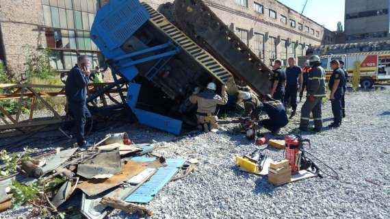 Рятувальники за допомогою гідравлічного обладнання під наглядом лікарів деблокували крановика.