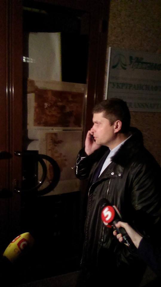 У той же час нардеп Сергій Лещенко збирається відкрити двері молотком. Пасішник передав Хомутиннику прохання пустити Лещенко так. Хомутинник відповів, щоб Лещенко йшов писати закони", - написав він у Фейсбук з місця подій.