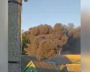 Після ранкових вибухів на електричній розподільчі станції виникла масштабна пожежа. Загасити її не можуть досі, за даними Цаплієнка.