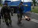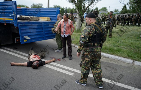 За словами бойовиків, вбитий ними чоловік є членом "Правого сектора", у них нібито є ще троє вбитих. На тілі вбитого видна велика різана рана в районі серця.