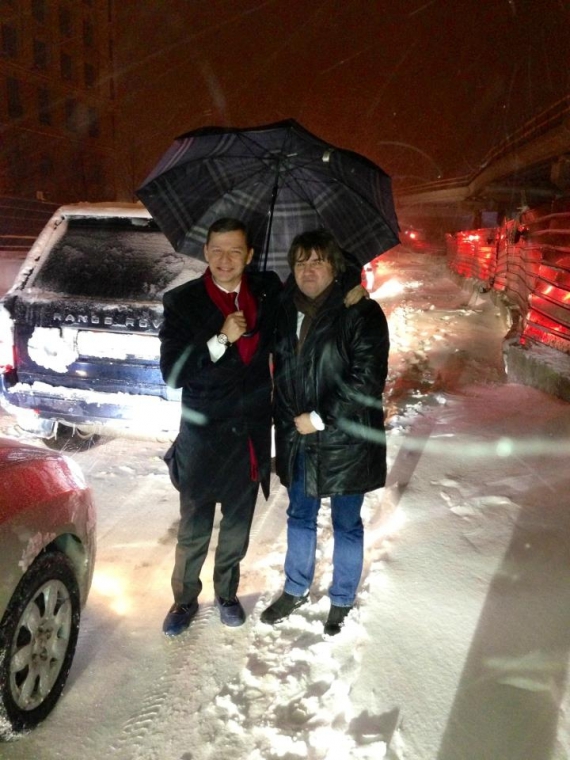 "Три години стоїмо з Вадимом Карасьовим в пробці на Поштовій площі після ефіру на "Шустер-лайв". Регіоналівський гауляйтер Попов, певно, зараз спить під м'якою периною. А в цей час десятки тисяч водіїв у столиці змушені ночувати у кілометрових заторах. Від імені всіх водіїв та пасажирів хочу повідомити владу: ми вас ненавидимо, ви не здатні забезпечити навіть елементарну підтримку людям в екстермальних умовах, жодної (!) снігоприбиральної машини я сьогодні так і не побачив. Бажаю своїм побратимам по нещастю, які теж застрягли у пробках, не втрачати оптимізму і не замерзнути! Грійтеся горілкою, як ми", - написав він.