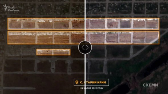На супутниковому знімку за 8 травня у селищі Старий Крим - місце масового поховання на кладовищі збільшились з 200 до понад 340 м у довжину - у порівнянні зі знімком цієї території за 24 квітня. Також збільшилась кількість траншей.