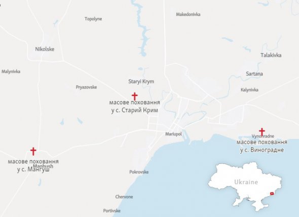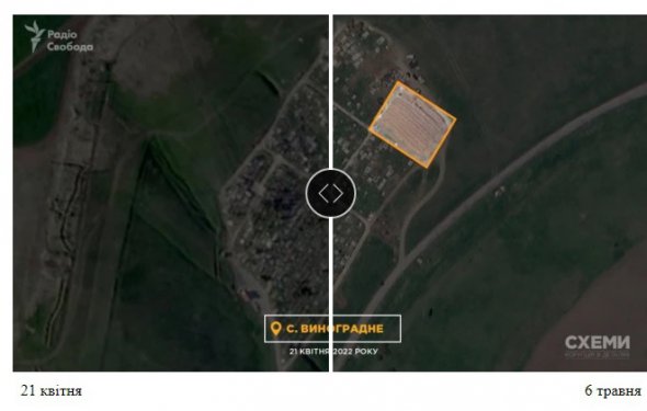 Раніше "Схеми" повідомляли про три виявлені неподалік Маріуполя сектора місця масового поховання - крім селища Старий Крим і села Виноградне, також супутник зафіксував "братську могилу" біля кладовища селища Мангуш у 20 км від Маріуполя.