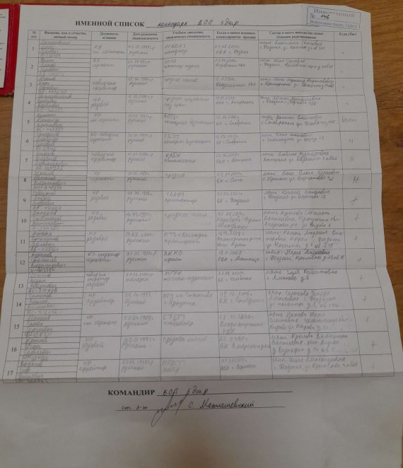 Розвідка показала список злочинних армійців 34-ї бригади управління в місті Владикавказ РФ. Військова частина №29202.