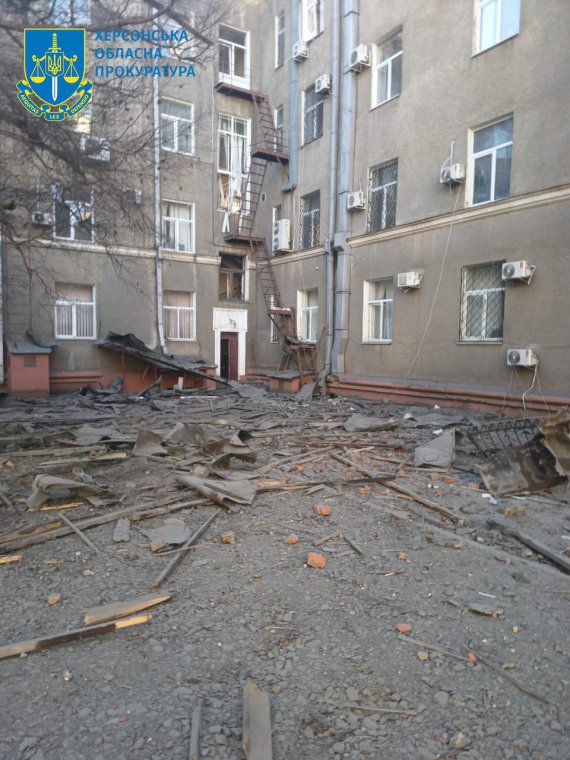 15 грудня ворог знову вдарив по центру міста. Приліт зафіксували за 100 м від будівлі Херсонської ОВА, яка була атакована вчора.