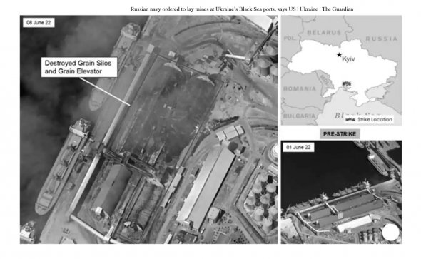 США оприлюднили супутникові знімки наслідків російського ракетного удару 4 червня по другому найбільшому в Україні зерновому терміналу біля Миколаєва.