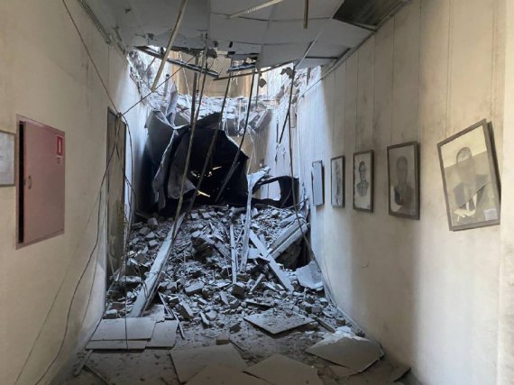 Снаряди поцілили у будівлю обласної військової адміністрації – пошкоджені два поверхи, повідомив заступник керівника Офіса президента Кирило Тимошенко в Telegram.