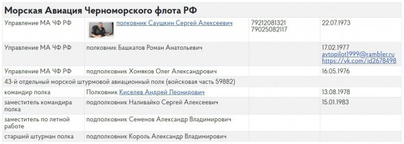 Головне управління розвідки Збройних сил України виклало у відкритий доступ список військовослужбовців 43-го окремого морського штурмового авіаційного полку (в/ч 59882) м. Саки, які скоюють військові злочини проти мирного населення України.