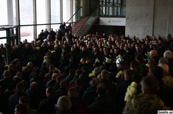 Церемонія прощання із керівниками і працівниками МВС відбулася в Національному центрі "Український дім". На неї прийшли президент із дружиною Оленою Зеленською, урядовці, народні депутати, священослужителі, пересічні громадяни.