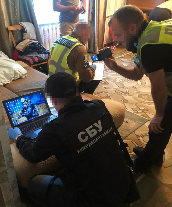 У ході проведення обшуку за місцем проживання затриманого правоохоронці вилучили банківські картки, на які здійснювалися перекази коштів, ноутбук, флеш-накопичувач і гроші.