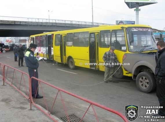 Автобус "Богдан" міжміського сполучення (маршрут "Бориспіль - Київ") рухався з боку метро "Позняки" у напрямку Харківської площі. За попередніми даними, водій маршрутки не вибрав безпечної дистанції руху і зіткнувся з іншим автобусом "Богдан" (маршрут станція метро "Харківська" - вул. Здолбунівська), який рухався попереду в попутному напрямку.