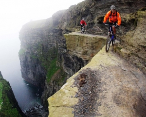 Парубок їхав по стежці, що проходила дуже близько до краю обриву. Не впоравшись з керуванням, він зірвався і, пролетівши вниз чотири метри, повис, зачепившись за схил руками.