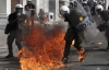 Учасники Маршу незалежності, який стартував сьогодні близько 16:00 за місцевим часом (17.00 за Києвом) з однієї з центральних площ міста, через кілька хвилин почали закидати правоохоронців палаючими петардами.