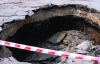Провалля сягало 2 м в діаметрі і 1,5 в глибину. У прес-службі зазначили, що підземні води підмили верхній шар ґрунту, тому асфальт провалився.