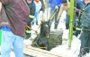 Пожежний ЗІЛ потихеньку тягнув "Форд", поки той не став у горизонтальне положення. Коли передня частина висіла на трубі, тягнути стало важче.