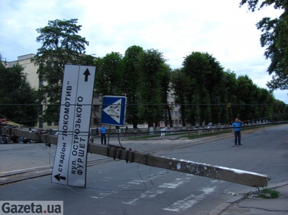 11 червня о 19.30 біля вінницького РАЦСу на перехресті вулиць Острозького і 50-річчя Перемоги впала липа. При падінні зачепила дроти. В результаті рухнули дві електроопори: Одна — поперек 50-річчя Перемоги на трамвайні колії, друга — на Острозького.
