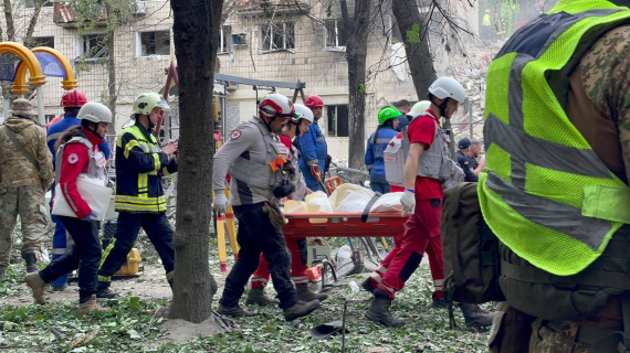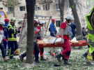 Унаслідок влучання ракети у дев'ятиповерхівку в Солом'янському районі Києва повністю зруйнований один під'їзд.