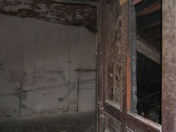 В будинку по вул. Університетській, 33, що в центрі Харкова протікає дах, осипається стеля, а на сходах немає поручнів. Перед Євро фасад будинку поштукатурили і пофарбували. Внутрішню частину будинку, яка знаходиться в дворі, не ремонтували. Тут у вікнах немає шибок, а зі стін осипається штукатурка.