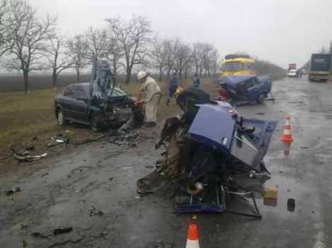 Водій ВАЗ-21011, який їхав в напрямку Миколаєва, з невідомих причин виїхав на смугу зустрічного руху, де зіткнувся з Opel. Водій і пасажир ВАЗ загинули на місці події, а четверо людей, які їхали в Opel були доставлені в Баштанському центральну районну лікарню. Серед них 41-річний водій, 40-річна жінка і двоє дітей 2002 і 2001 року народження.