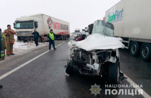 Як зазначається, легковик "Lifan" і вантажівка "DAF" зіткнулися лоб в лоб. Легковий автомобіль просто зім'яло, 31-річний водій загинув на місці. Крім того, постраждали його 27-річна дружина та однорічна дочка. Їх з тілесними ушкодженнями госпіталізували до районної лікарні. Водій вантажівки, за попередніми даними, не постраждав.