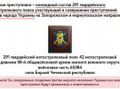 Бере участь у скоєнні злочинів проти народу України на Запорізькому та Маріупольському напрямах.
